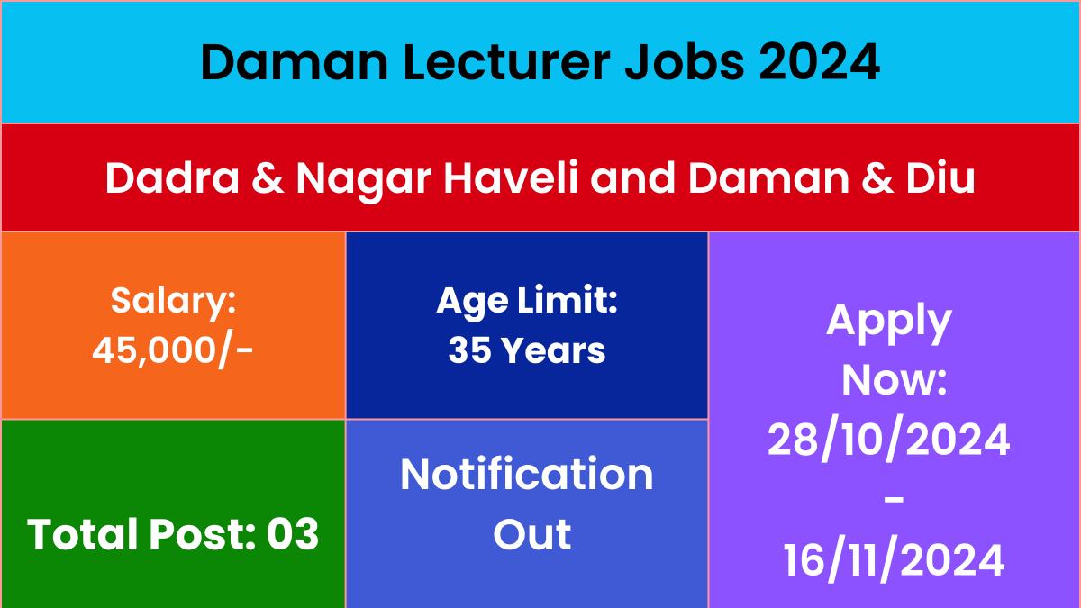 Daman Lecturer Jobs 2024: U.T Administration of Dadra & Nagar Haveli and Daman & Diu… Read More